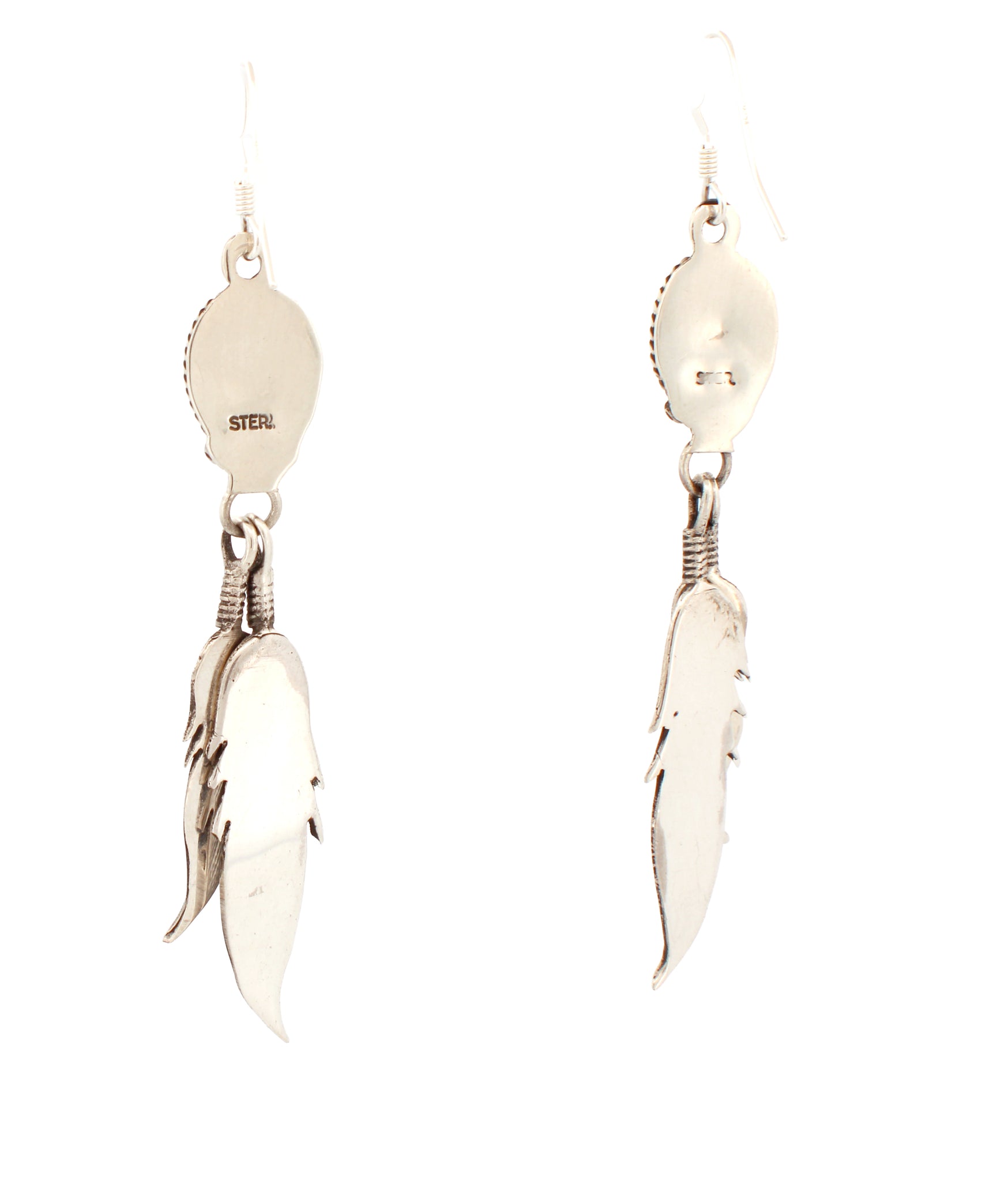 This is a pair of Navajo Native American handcrafted earrings by Chris Charley. These earrings are created with Kingman Turquoise crafted with Sterling Silver. Both settings are stamped STER for Sterling.