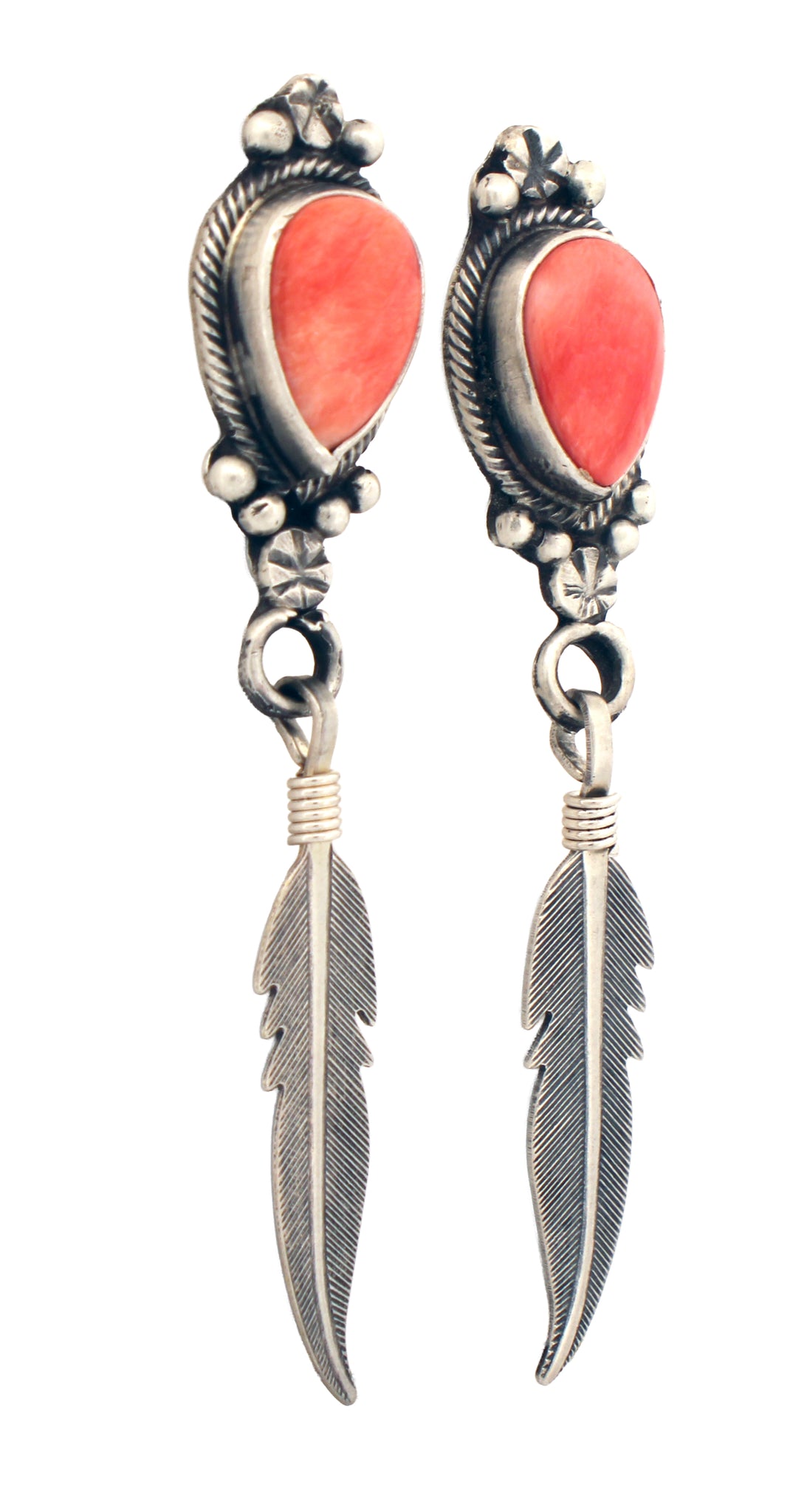 Navajo Native American Orange Shell and Feather Earrings by Chris Charley SKU233129