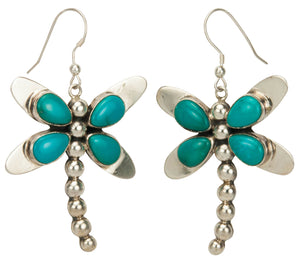 Navajo Native American Kingman Turquoise Dragonfly Earrings SKU229262