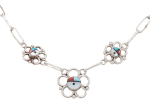 Zuni Native American Turquoise and Coral Sunface Choker Necklace SKU231000