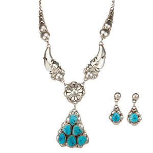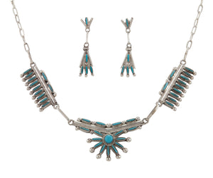 Zuni Native American Needle Point Turquoise Necklace and Earrings SKU227392