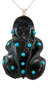 Zuni Native American Serpentine Frog Fetish Pendant Necklace by Lawaka SKU232913