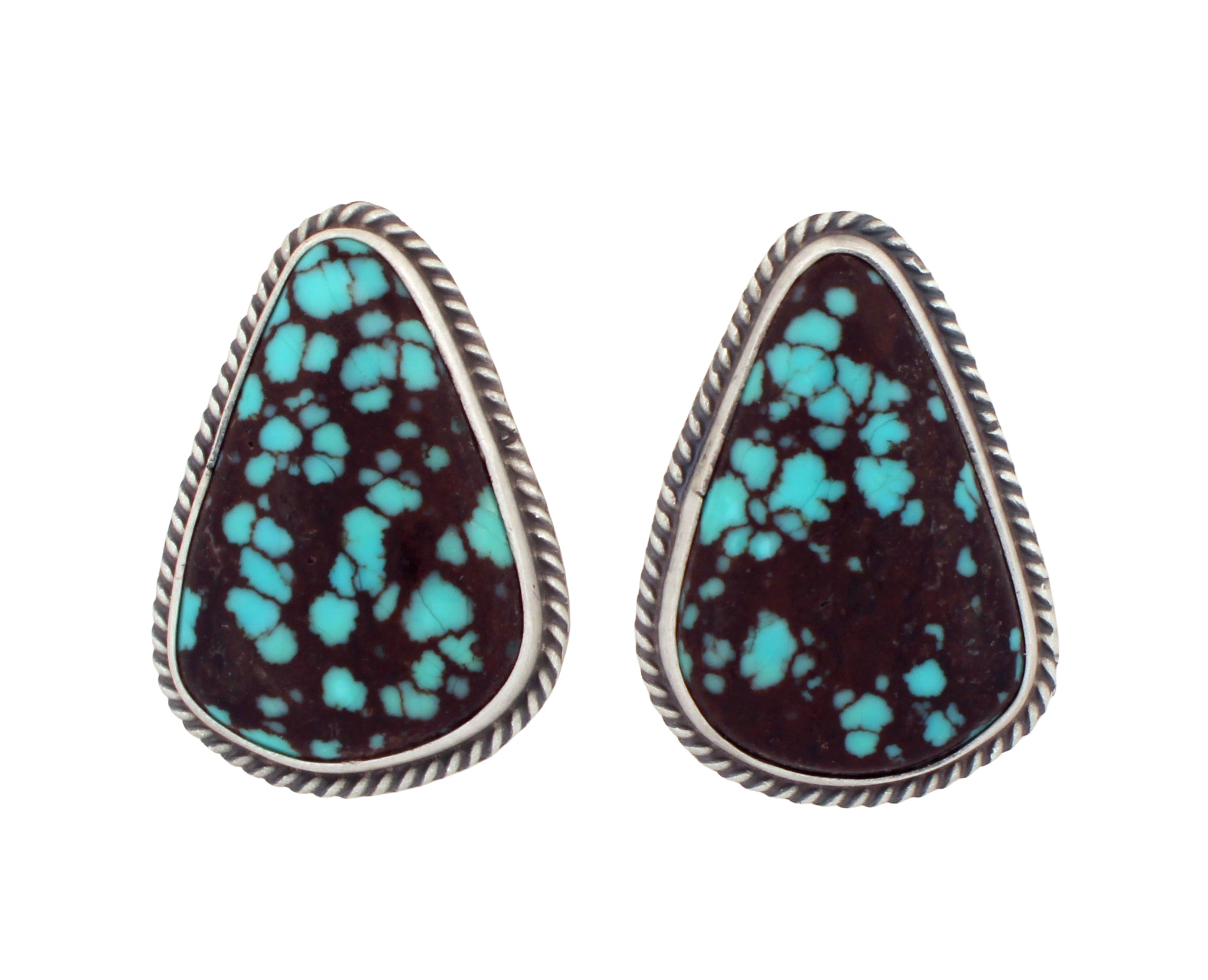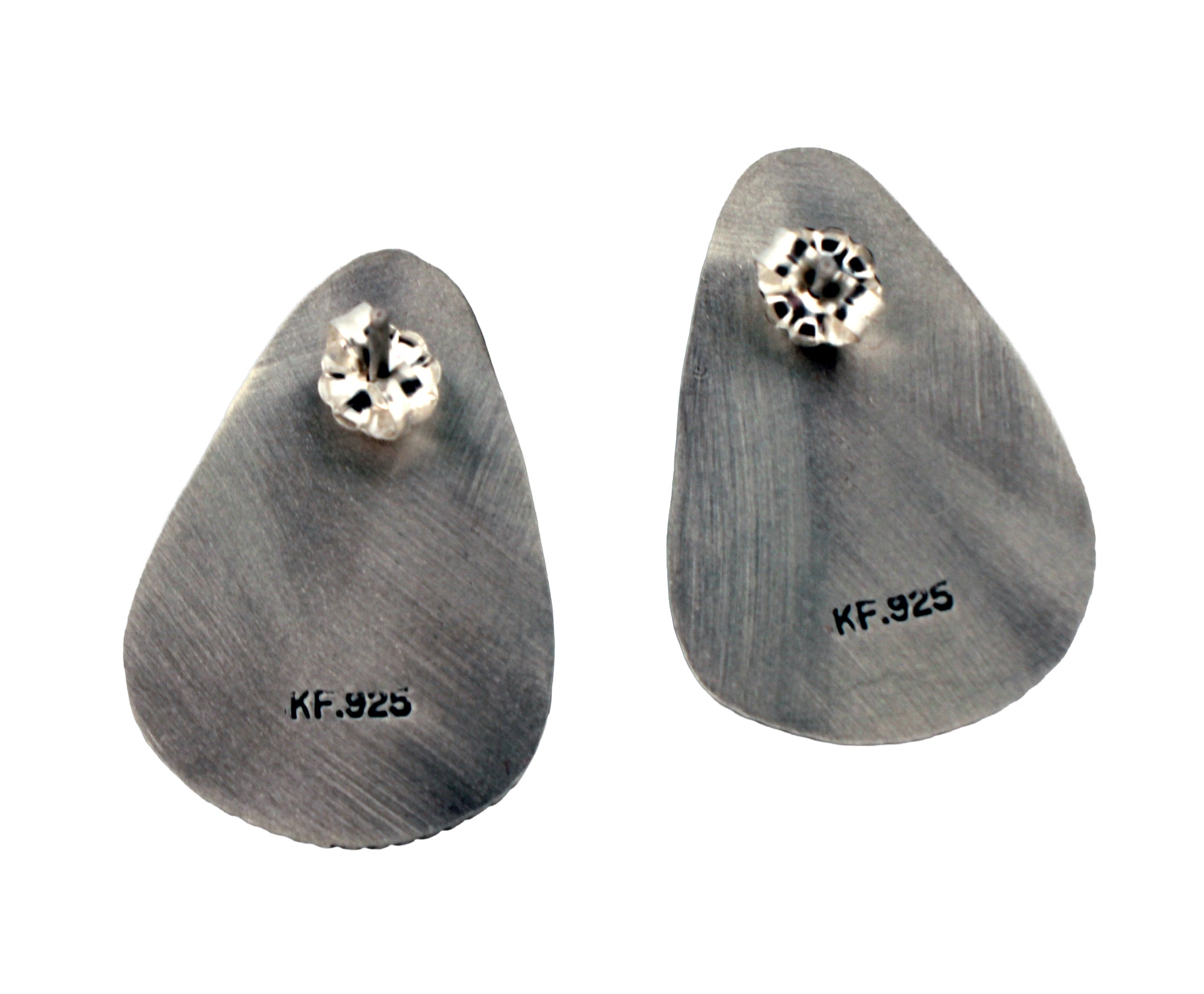 This is a pair of Navajo Native American handcrafted earrings by Kathleen Francisco. These earrings are created with Prince Turquoise crafted with Sterling Silver. Both settings are signed by Kathleen noted as KF and are stamped .925.