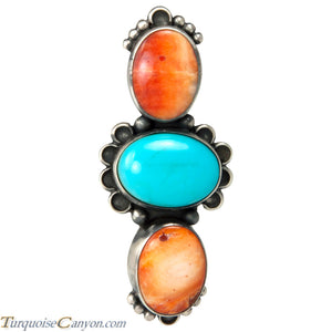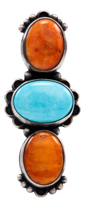 Navajo Native American Turquoise and Orange Shell Ring Size 6 3/4 SKU229155