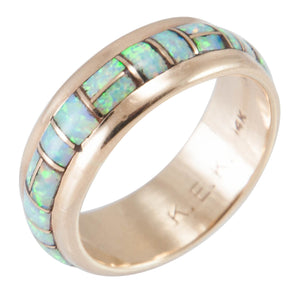 Zuni Native American Lab Opal and 14k Yellow Gold Ring Size 8 1/4 SKU230205