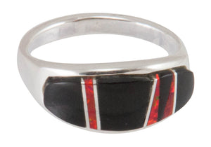 Navajo Native American Created Opal and Jet Inlay Ring Size 12 1/2 by Calvin Begay SKU231398