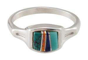Navajo Native American Multi Stone Inlay Ring Size 7 3/4 by B Joe SKU230450