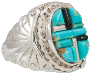 Zuni Native American Pueblo Design Inlay Ring Size 10 by Booqua SKU227258
