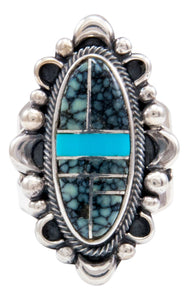 Navajo Native American Turquoise Inlay Ring Size 8 1/2 by B Joe SKU230472
