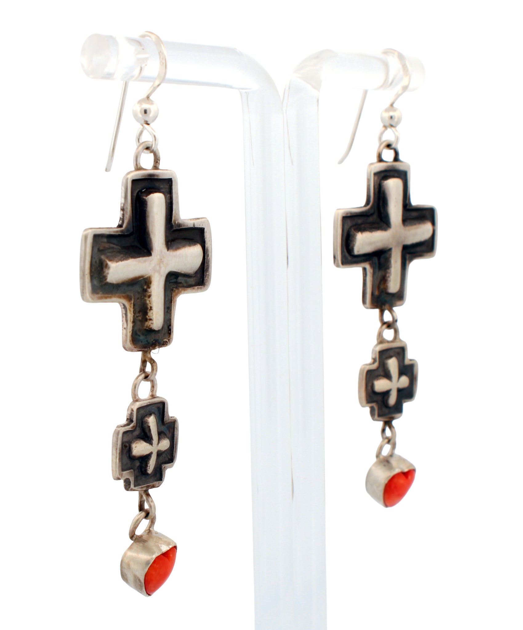 Navajo Native American Cross and Spiny Oyster Earrings by Dakota Willie SKU223143