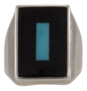 Zuni Native American Turquoise and Jet Inlay Ring Size 10 1/2 by Harlan Coonsis SKU231694