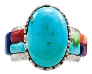 Navajo Native American Turquoise Inlay Ring Size 8 1/2 by B Joe SKU230457
