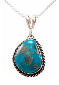 Navajo Native American Kingman Turquoise Pendant Necklace by Spencer SKU232509