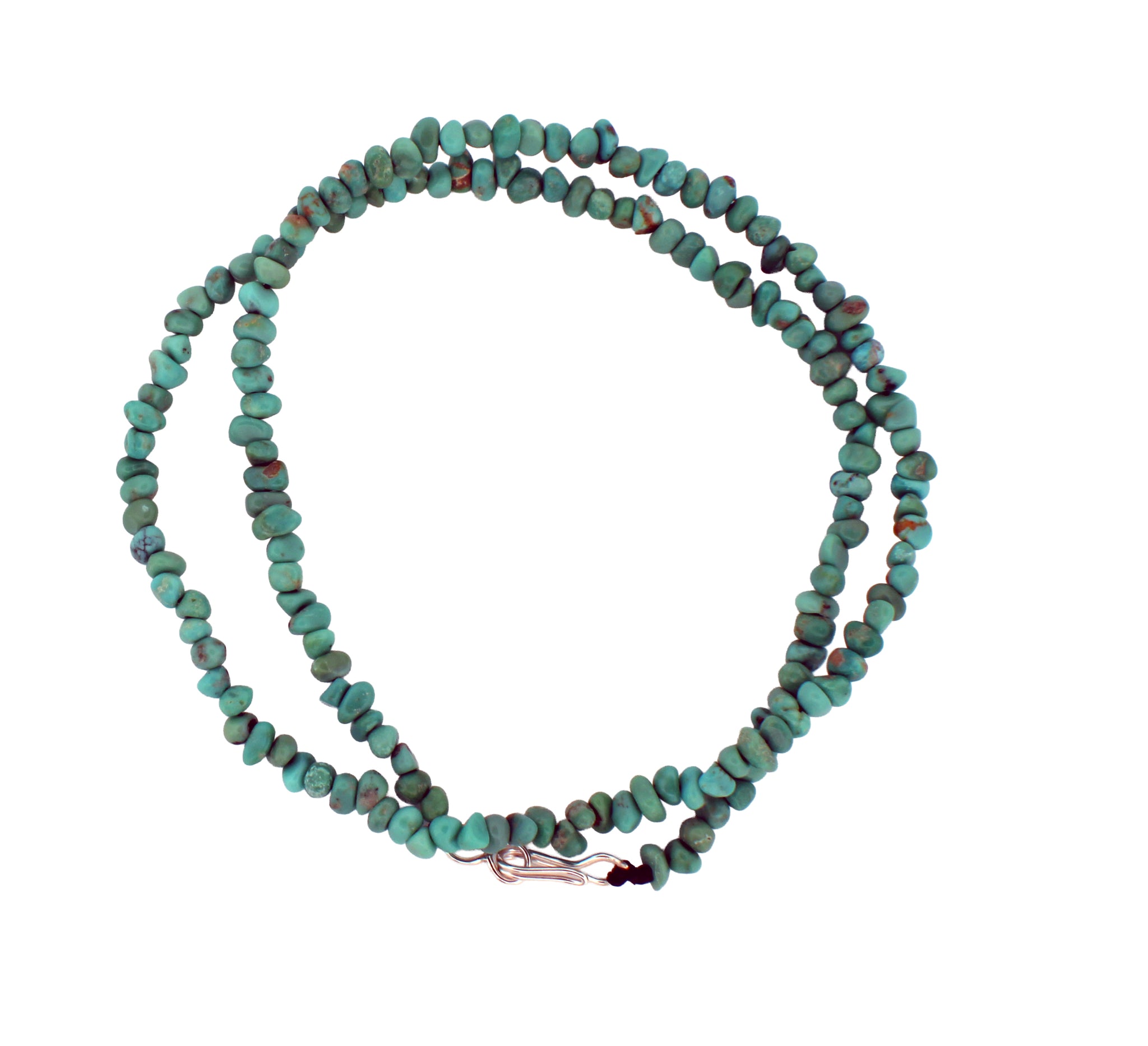 This is a non Native American Campitos Mine Nugget Necklace with Sterling Silver hook and eye clasp. Total length is 18 3/8 inches with a total weight of 11.1 grams.