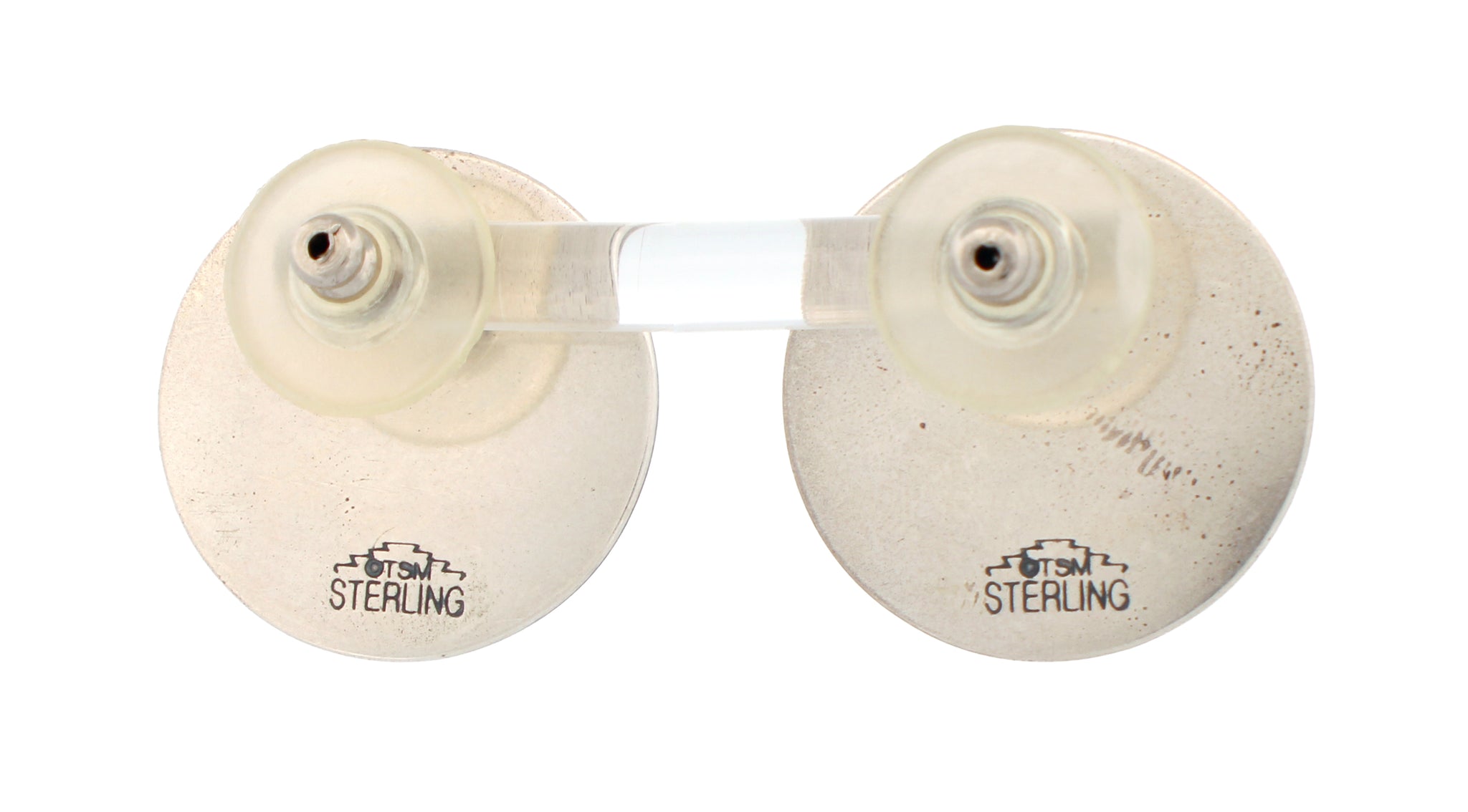 The earrings measure approximately 15/16 inch in diameter. The reverse of both setting are stamped OTSM and are stamped Sterling.