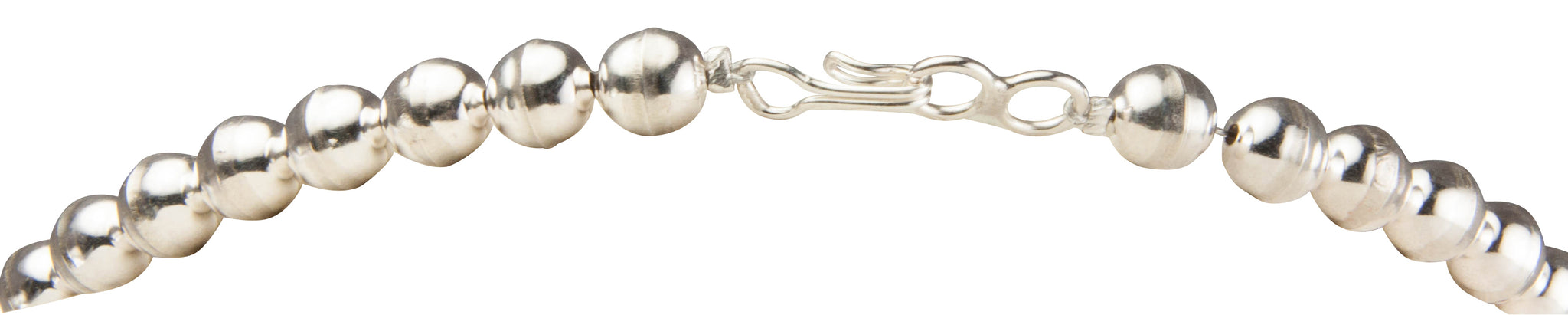 The large center Sunface measures 2 7/16 inches in diameter. Each of the ten smaller Sunface works of art measure 1 5/8 inches in diameter. Overall length of this piece is 34 1/2 inches with a total weight of 217.4 grams.