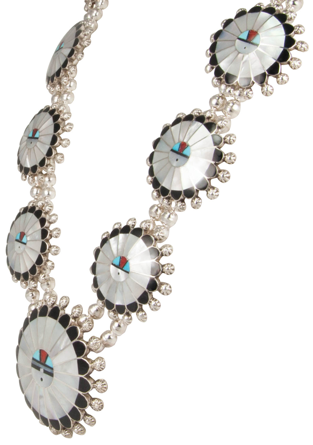 Zuni Native American Mother of Pearl Sunface Necklace by Sosseah SKU229827