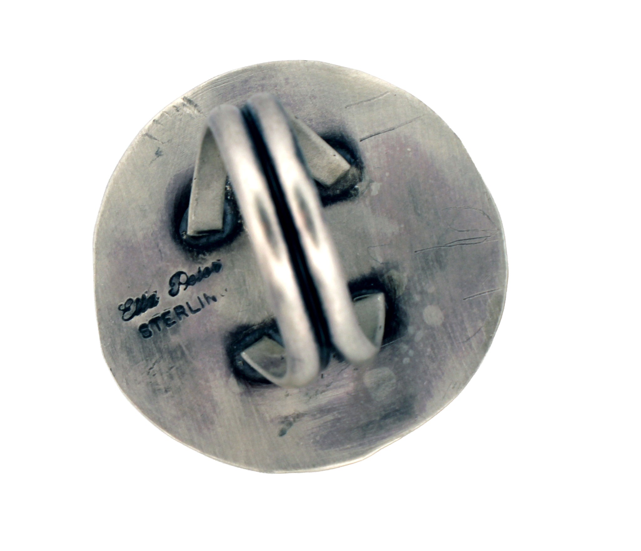 This is a Navajo Native American handcrafted ring size 7 1/2 by Ella Peters. This beautiful ring is created with Armenian Turquoise crafted with Sterling Silver. This piece is signed by Ella and is stamped Sterling.