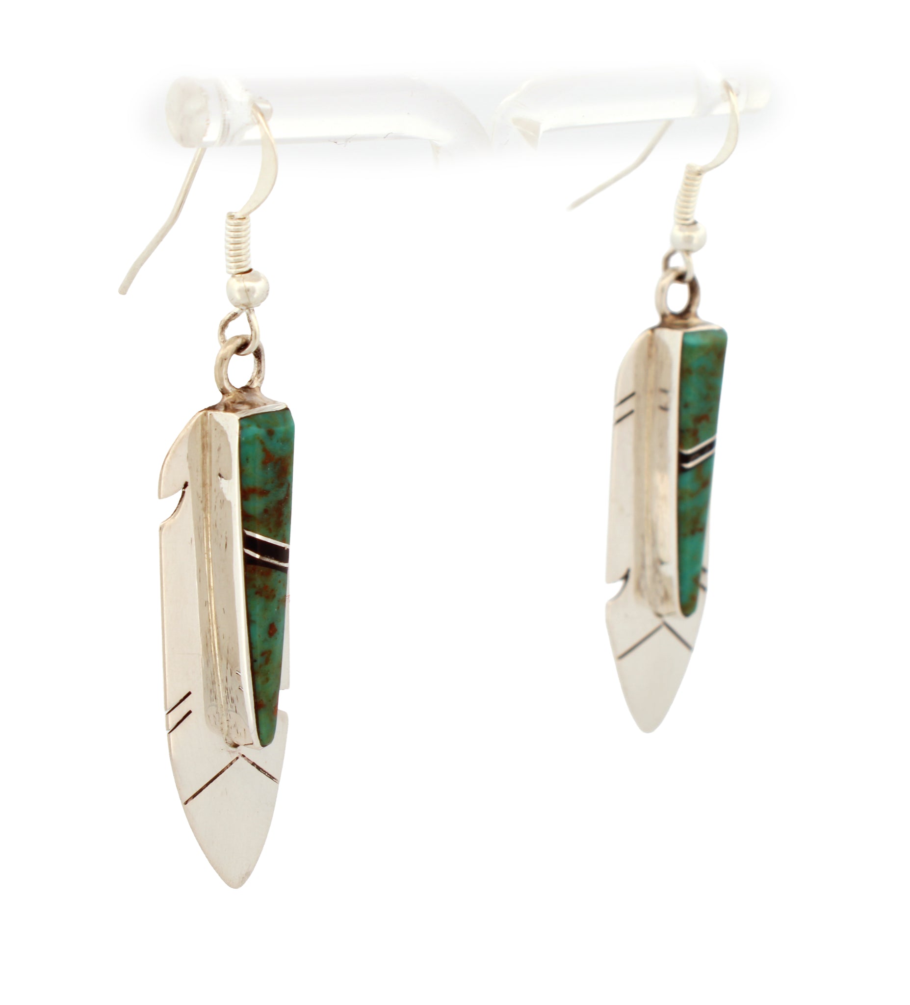 Navajo Native American Feather Turquoise Inlay Earrings SKU233222